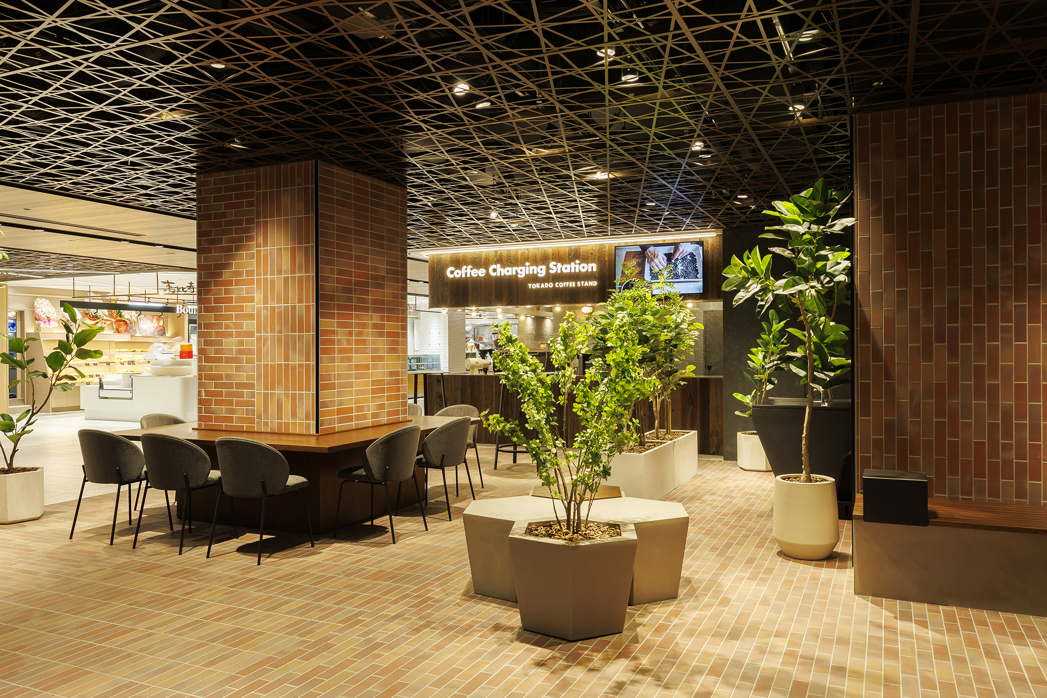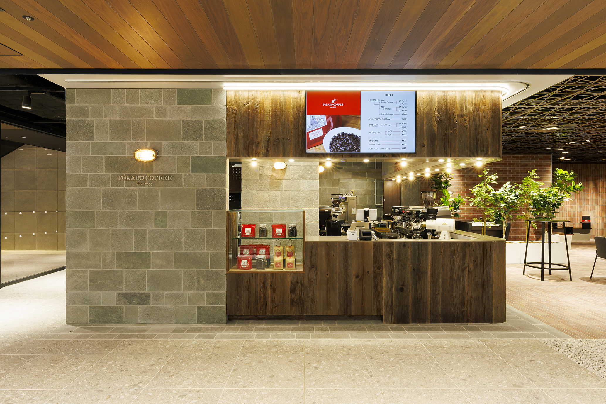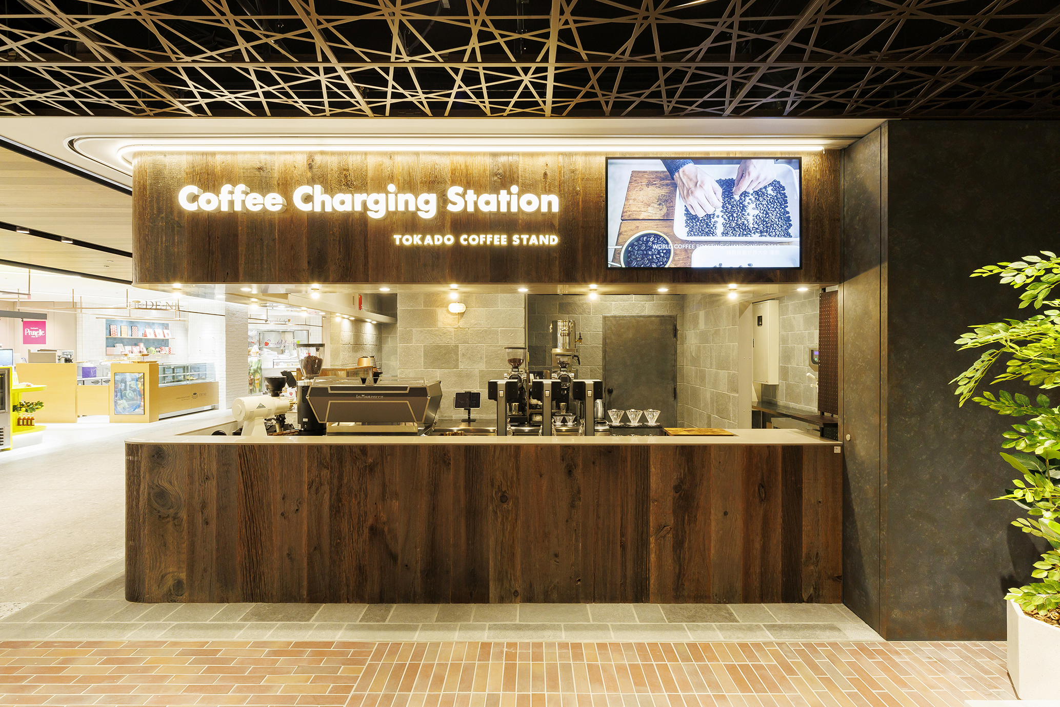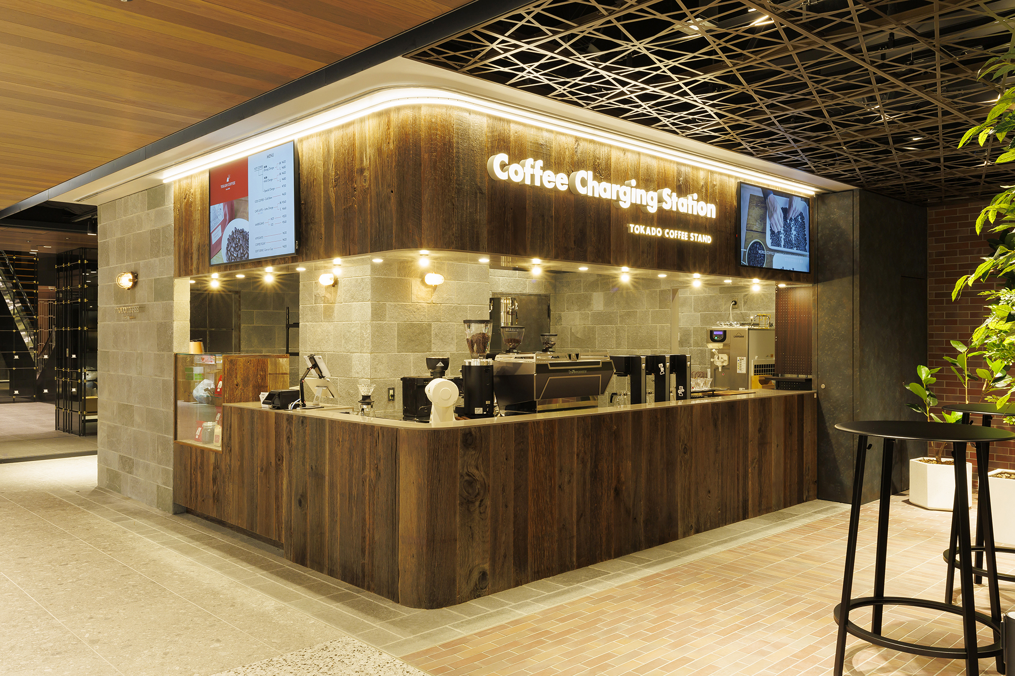 「美味しいコーヒーを給水所のようにchargeできる場所にしたい」というオーナーの思いを掲げた「Coffee Charging Station」というタイトルを正面発光サインにしたいという要望を、様々な設計規制のある複合ビルにおいて施設側が許可していただいたおかげで、共用通路からの視認性とブランドイメージを高めることもでき、石と木の自然素材による視覚的な落ち着きと高級感を両立した空間になったと思います。
